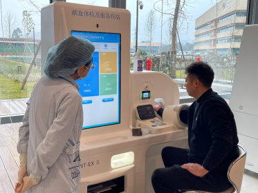 同行的2013级校友叶茂体验成都市血液中心服务平台血压等检测