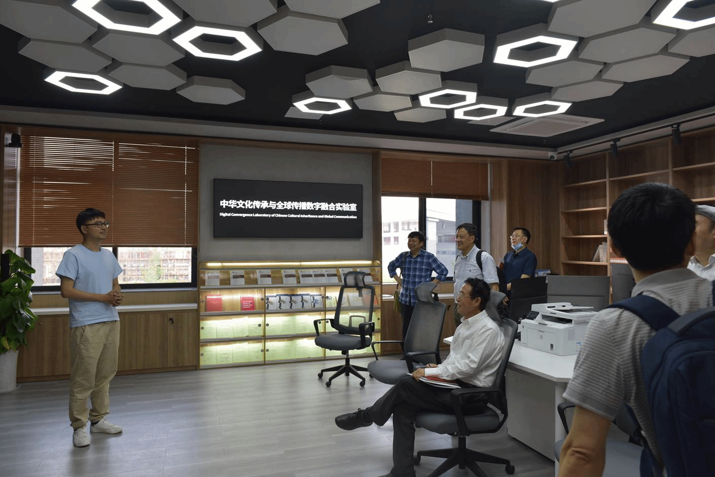 院长李怡教授,学科群责任教授蒋晓丽,学校社科处处长、学科群学术委员傅其林教授,学校发展规划处副处长贺喆南,学科群学术委员蔡尚伟教授,学科群保障组组长、果冻传媒